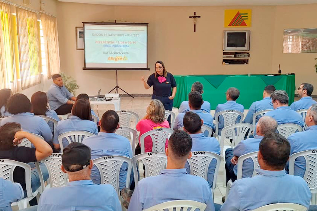 Sobe a liderança da Gerente Industrial (Dra. Marlene Oliveira) e a Gerente de Recursos Humanos (Dra. Cicília Gonçalves) tivemos um encontro na manhã de hoje, que nos rendeu informações relevantes do Desempenho nos 80 dias da safra 2025 – 2026, com a apresentação da performance abordando os temas: Técnicos, Gestão de Pessoas, Segurança e Saúde, além dos impactos nos Custos de Manutenção e Produção.